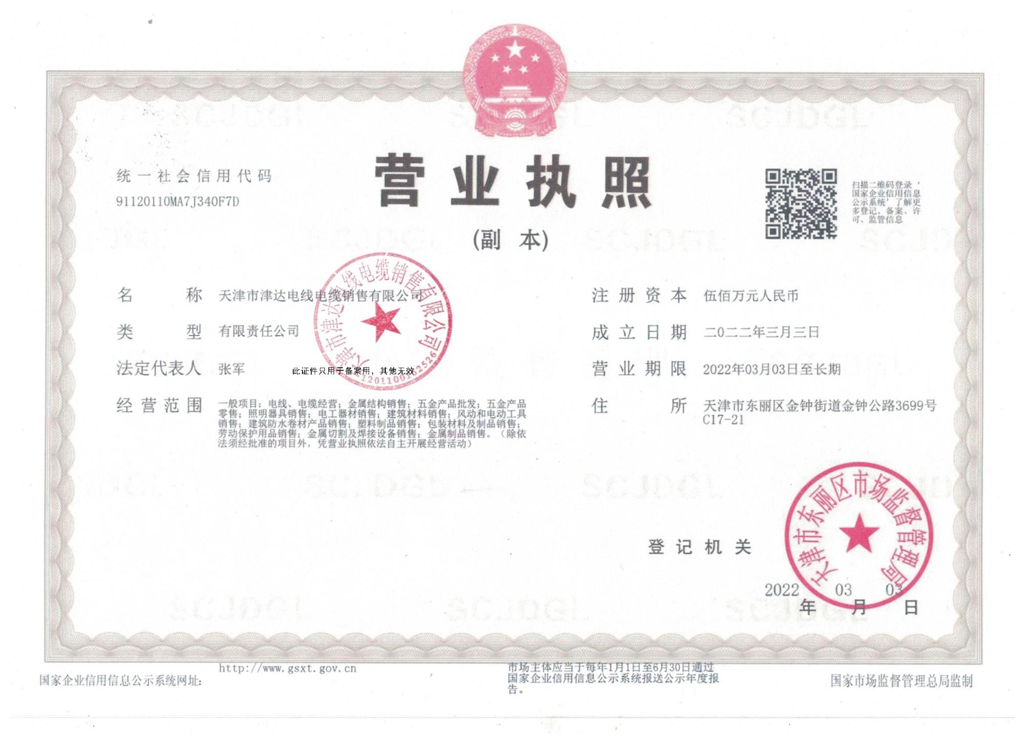 天津市津達電線電纜銷售有限公司是天津正標津達線纜集團有限公司的廠家直銷處,產品主要涵蓋了交聯聚乙烯絕緣電力電纜、高低壓電力電纜、控制電纜、計算機電纜、 阻燃耐火電纜,低煙無鹵電纜,礦物質絕緣防火電纜,彈性體軟電纜,預分支電纜以及各種聚氯乙烯絕緣電線 ,塑銅線,塑軟線,雙絞線,護套線,屏蔽線,橡套電纜,特種線纜等. 優良的品質、 真誠的服務、專業的銷售、完善的售后、誠實守信的經營…